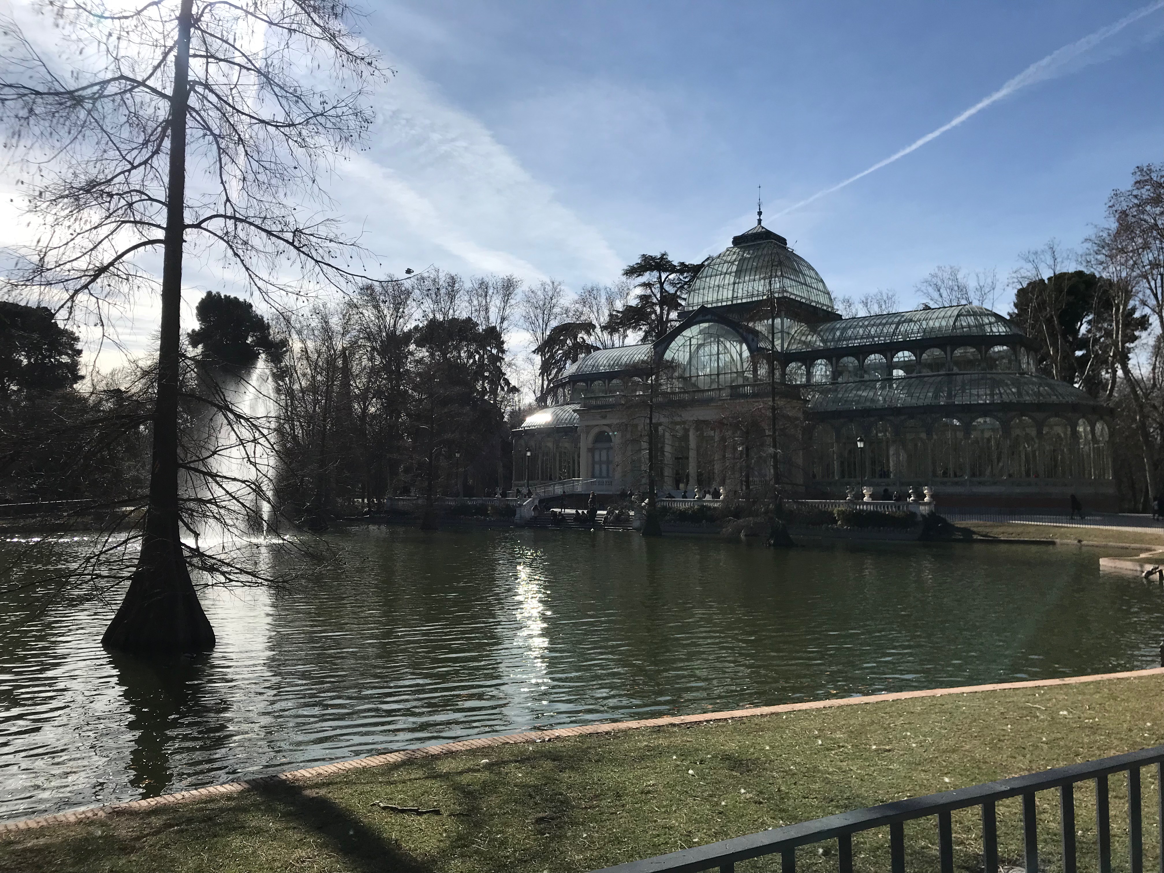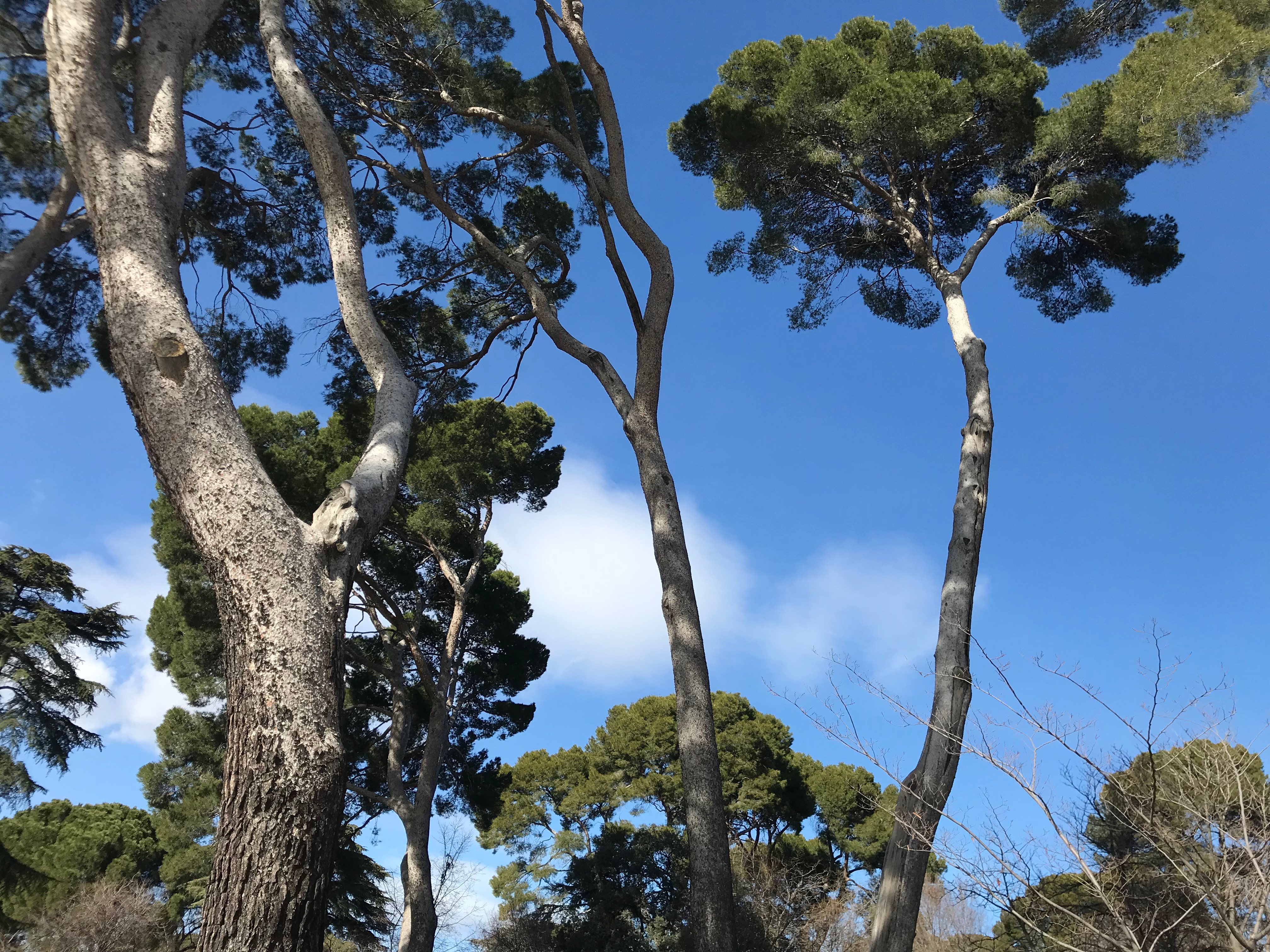 Solo después de dar tres vueltas sin saber por qué a un mismo árbol gigante me planto frente a su tronco impresionante, un brazo fuerte y entramado que se incrusta en el cielo. Su copa se mece majestuosa, invitada a bailar por el viento. De sus ramas, en sus extremos, parecen colgar hojas caducas y perennes, esplendorosas caducifolias y acículas, ágiles hebras y frutos de colores variados, tan atractivos como juguetes, que van del rojo al azul, pasando por multitud de verdes y amarillos, todos distintos, pero ninguno chillón, en este árbol imposible como un sueño. Todos llegan directos a su destino (el cerebro reconstructor) en un único momento de impacto colosal: estaba prevenido, pero he caído en la emboscada sin poder evitarlo. Atrapado sin remedio en la mañana intento seguir las indicaciones de las ramas. Señalan grácilmente distintas direcciones del parque. Una, de verde intenso, cuajado de primavera, me transporta a la parte de atrás del Palacio de Cristal.