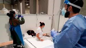 enfermo y sanitarios en cama