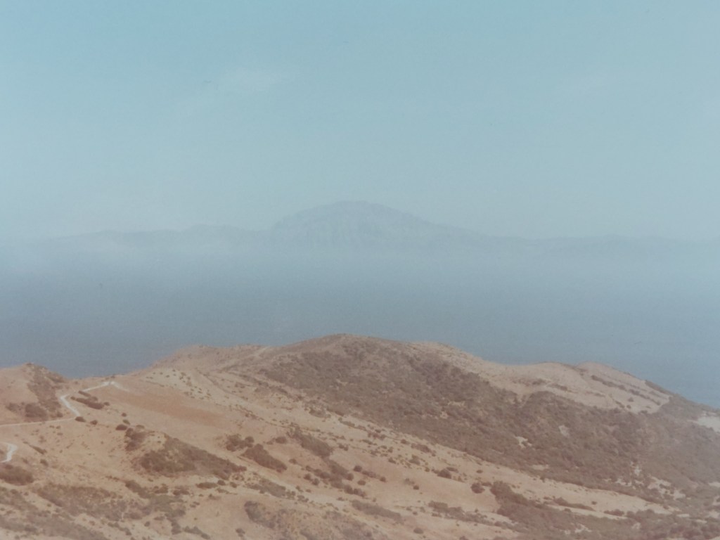 Por encima de la bruma que esconde al estrecho, asoma un peñón rocoso, blanco gris, que engaña sobre su verdadero tamaño. Cuando se disipe la niebla, veremos que esa montaña tiene una base, una tierra que es África, el principio de África. El pensamiento vertiginoso recorre el espinazo figurado del continente de norte a sur, hasta Ciudad del Cabo, y se queda tan pancho. Toda África imaginada de una tacada desde la punta de Europa. Hay otro sur que se asoma desde ahí y es prácticamente inabarcable. Sur de ensueño, inalcanzable, el resto del mundo que queda por conocer, la vida futura. El horizonte juega con nosotros, se insinúa, se retira, juguete de la niebla, cómo viajarán las nubes por un territorio tan vasto.