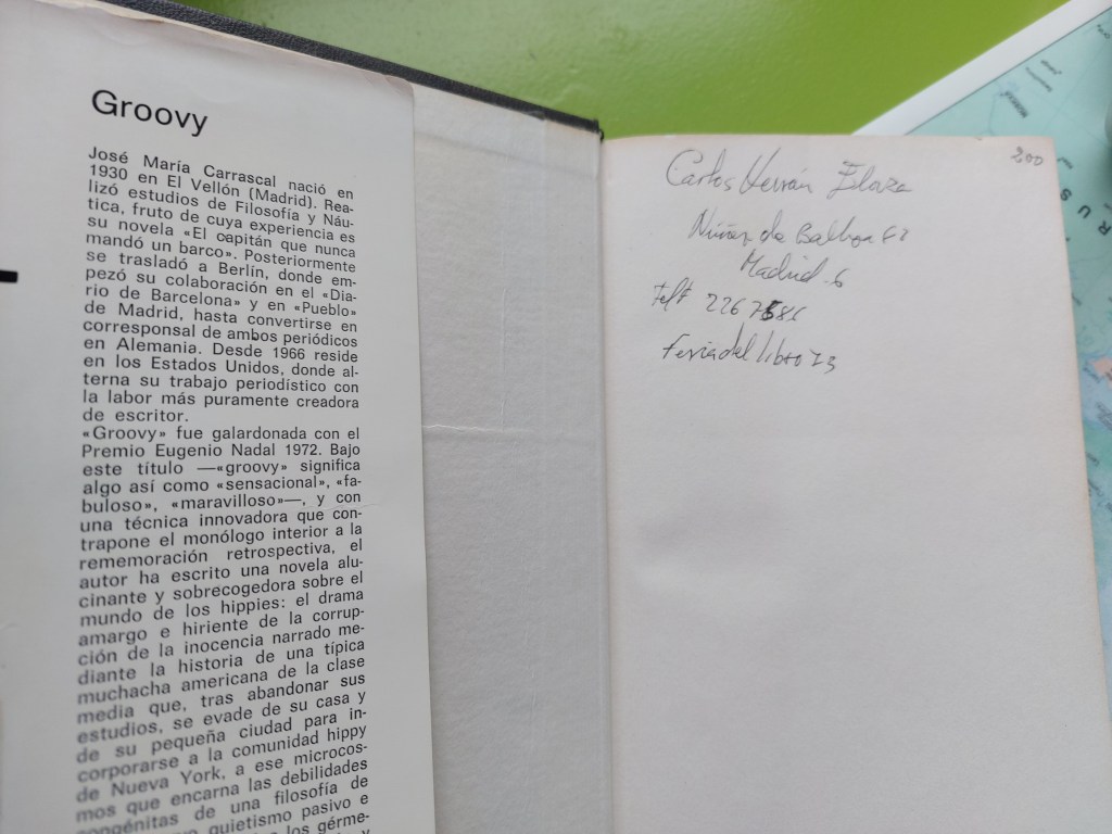 No la leí entonces y me alegro. Quizá si lo hubiera hecho, la cascada de sucesos de carácter netamente adolescente habría sido distinta, no hablaría desde este «hoy». Ahora sí, lo saco de la estantería, desde donde me ha guiñado muchas veces, pidiendo atención, mientras yo le contestaba «Ya te leeré». Y, por fin, lo leo: «Groovy», el premio Nadal de literatura de 1972, de José María Carrascal, casi cincuenta años después de ponerlo en mi punto de mira para la feria, a la que acudí inconsciente de la aventura en ciernes, el porvenir.